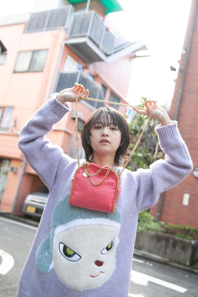 トップス ¥209,000、バッグ ¥128,700/ Stella McCartney (ステラ マッカートニー)