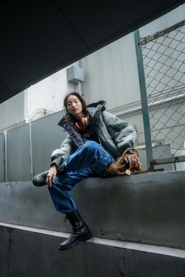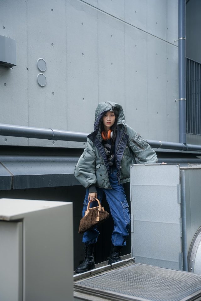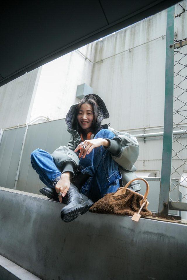 パンツ/Levi’s(リーバイス)、シューズ/UNITED ARROWS(ユナイテッドアローズ)、バッグ/ader error(アーダーエラー)
