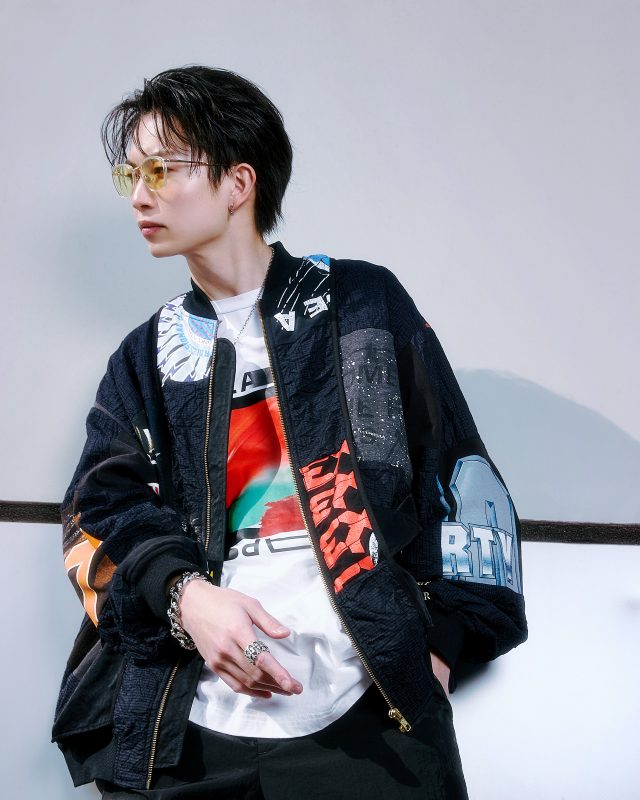 ブルゾン¥96,800/KIMMY(キミー)、Tシャツ¥23,100/Iroquois(イロコイ)、パンツ¥46,200/LAD MUSICIAN(ラッド ミュージシャン)、シューズ¥13,530/NIKE SPORTSWEAR(ナイキ スポーツウェア)、サングラス¥42,900/One/Three Compound Frame(ワンスリー コンパウンド フレーム)、アクセサリー/本人私物