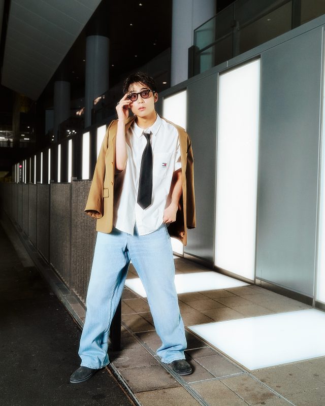 イージーポプリンショートスリーブオーバーシャツ ¥12,100、バギージーンズ ¥18,700/TOMMY JEANS (トミー ジーンズ)、その他本人私物