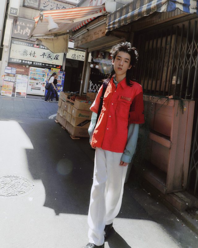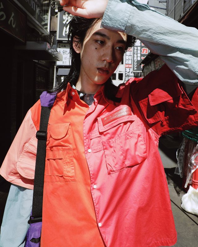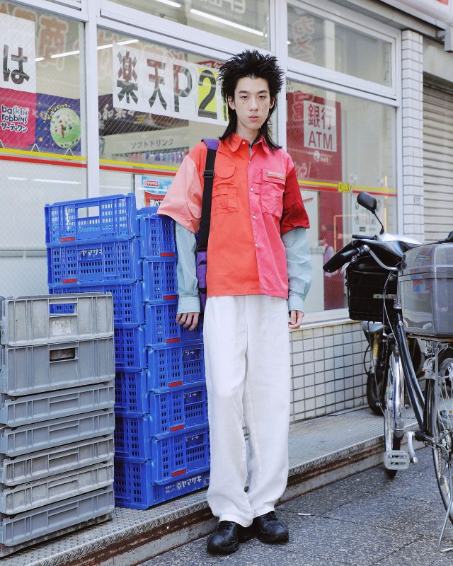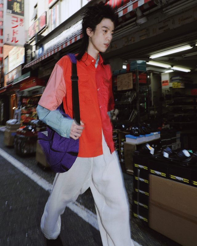 シャツ/XANDER ZHOU (ザンダー ゾウ)、パンツ、バッグ/Vintage、シューズ/NIKE (ナイキ)