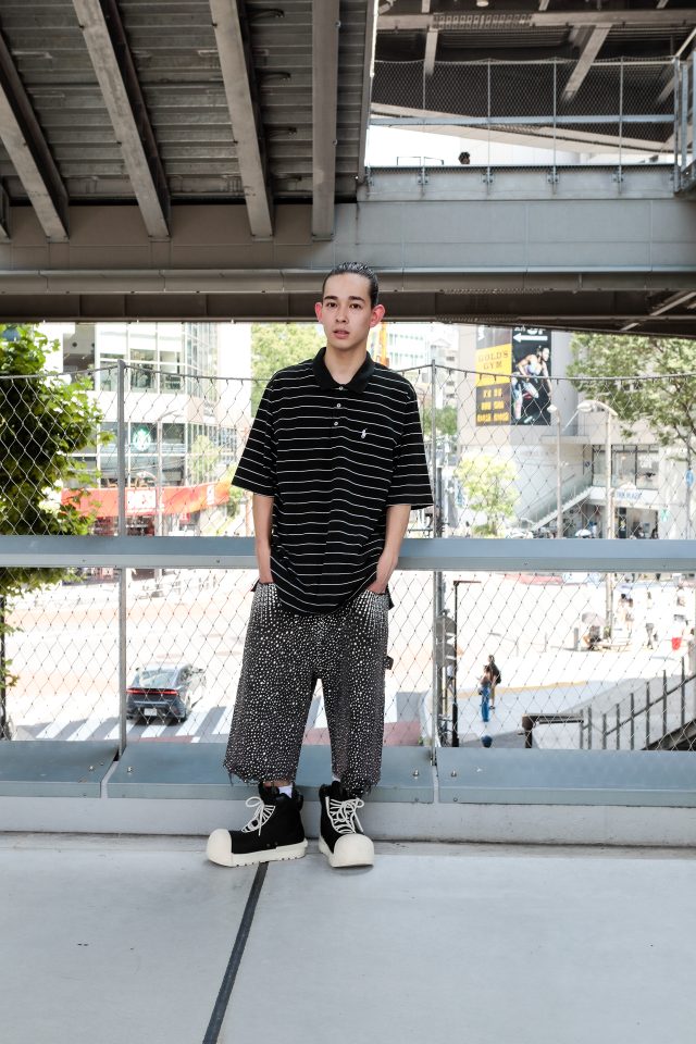 トップス/Polo Ralph Lauren (ポロ ラルフ ローレン)、パンツ/Birth Of Royal Child (バース オブ ロイヤル チャイルド)、シューズ/F.V.V.O (フリー ワールド オーダー )
