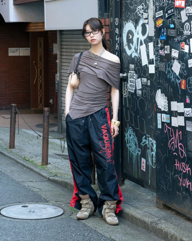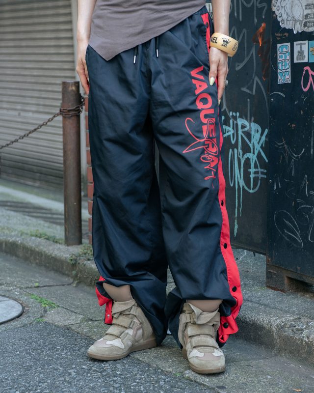 トップス/Gimaguas (ギマガス)、パンツ/VAQUERA (ヴァケラ)、シューズ/Isabel Marant (イザベルマラン)