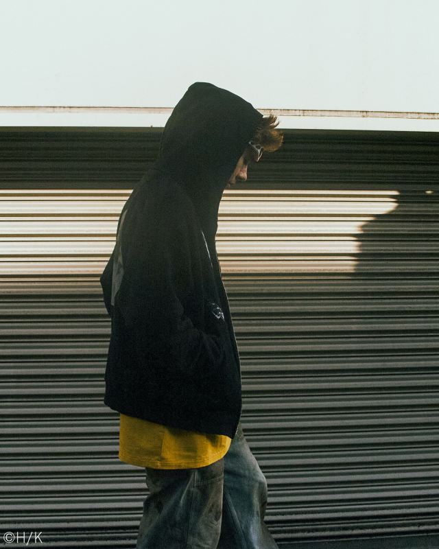 フーディの背面には、作中で象徴的な“月”をリフレクターでプリント🌕 ボディはダメージとフロスト加工でユーズドっぽく、気合いを入れすぎない感じが、いまのムード🎧