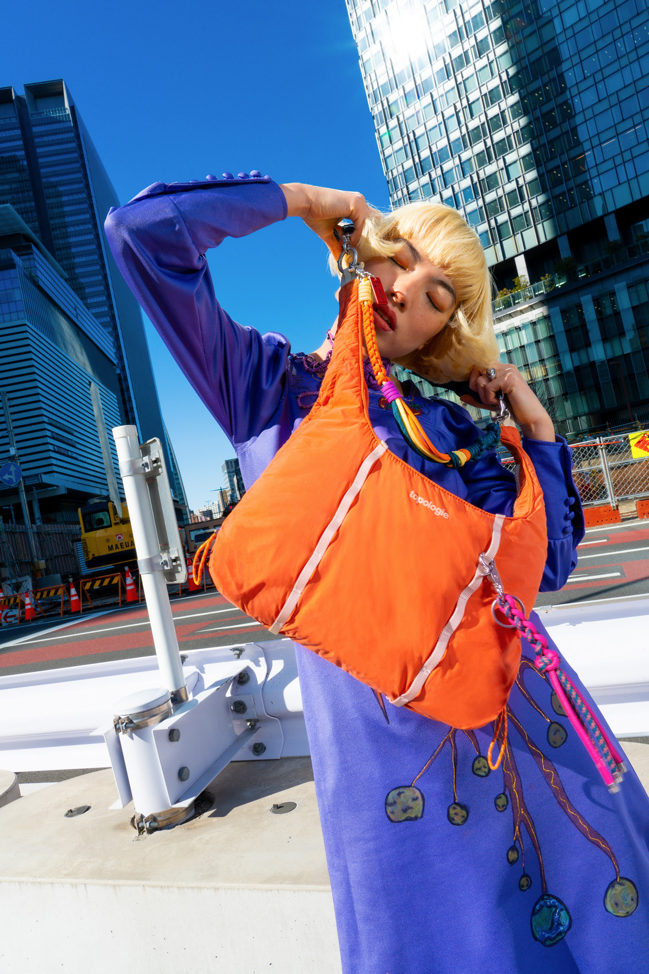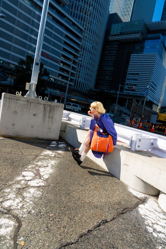 オープンを記念して、パフォーミングアーティストのアオイヤマダを名古屋でスナップ📸Topologie のアイテムを自身でカスタマイズし、バッグやストラップを自由に組み合わせたスタイルをまとって登場。ブランドならではの自由なカスタマイズを体現したスタイリングに👜💛