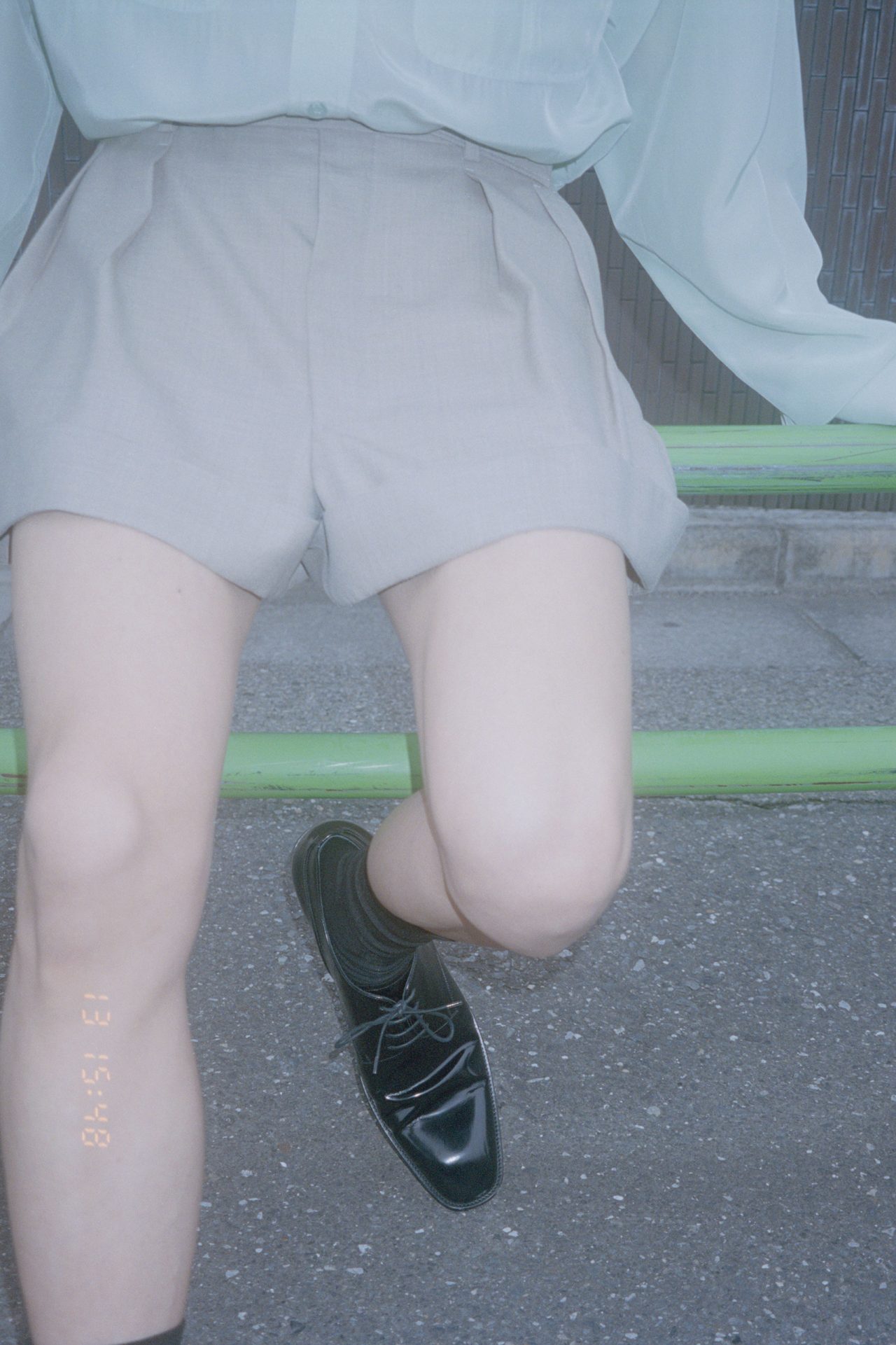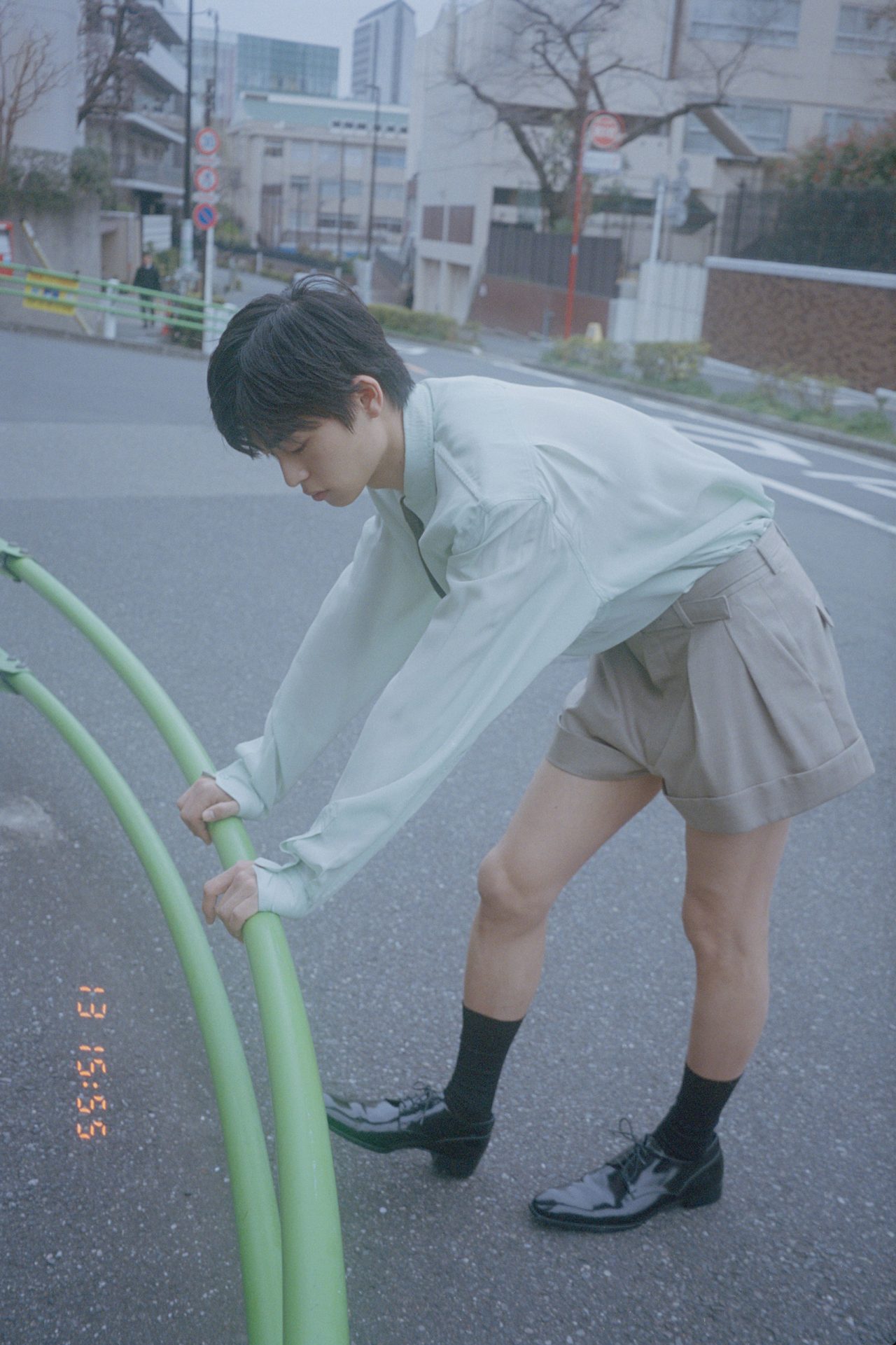 シャツ ¥332,000、ショーツ ¥222,200、シューズ ¥203,500、ネクタイ ¥44,000/すべて SAINT LAURENT (サンローラン)、ソックス/スタイリスト私物