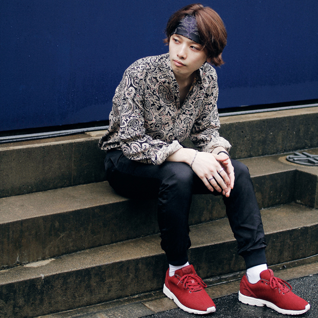 今回、レッド、カーキ、オフホワイトの秋らしいカラー3色からなる「ZX FLUX (ゼットエックス フラックス)」を、東京のストリートを代表する6名がそれぞれのイノベーティブなスタイルで履きこなす。