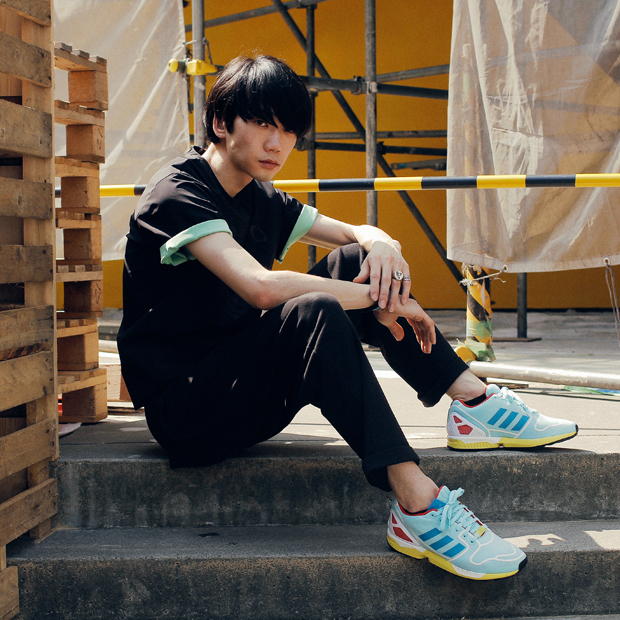 今回、流行りのクラシックランニングやクリーンなホワイト系モデルとは異なるシルエットの ZX Family の最新進化系モデル「ZX FLUX」を、東京のストリートを代表する6名がそれぞれのイノベーティブなスタイルで履きこなす。