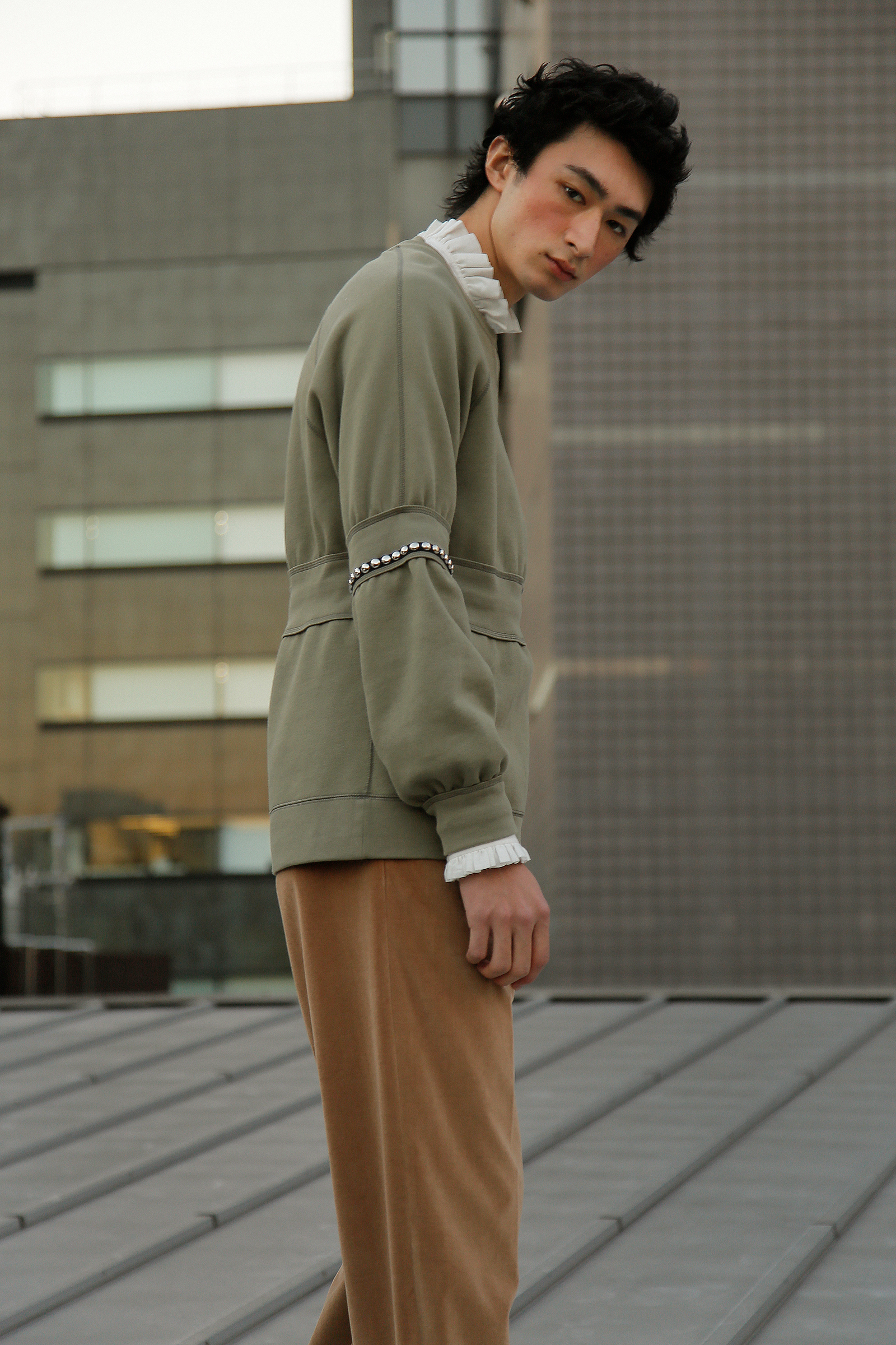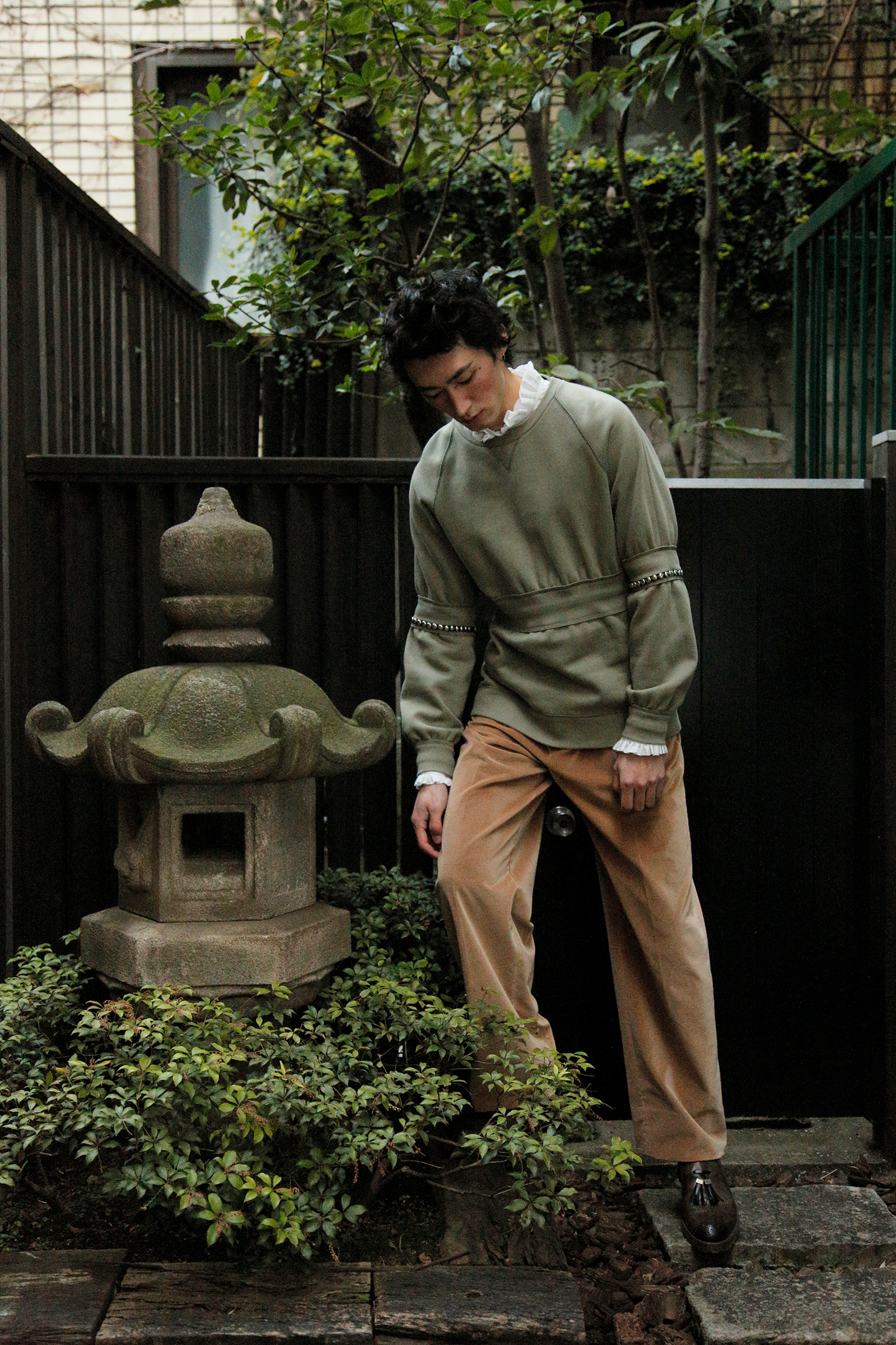 まず最初に登場するのは、Donna (ドンナ) 所属の海老原拓弥。着用するのは Christopher Bailey (クリストファー・ベイリー) による Burberry (バーバリー) のロマンティックなメンズルック。東京から発信される新たな鼓動に、是非ご期待下さい。
