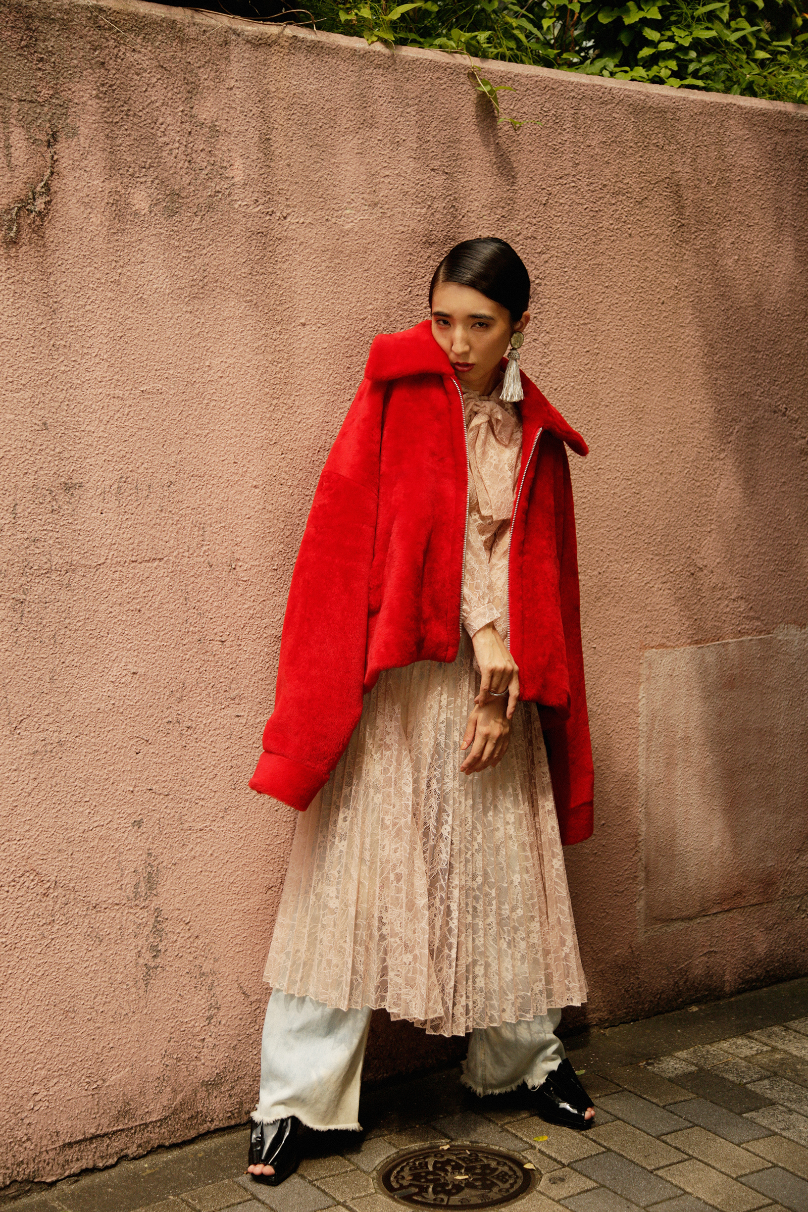 Coat: NEON SIGN / One-piece: Verybrain / Bottoms: Used / Pierce: THE Dallas / Shoes: PRADA