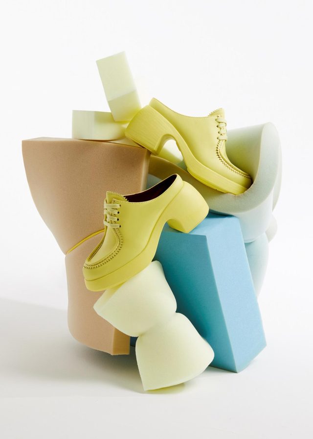 そしてメインコレクションは、今季のテーマ「OUT OF OFFICE」を表現したカラフルな空間で展開。デイリーに履ける定番アイテムから、気分を上げたい特別な日にセレクトしたい、プレイフルで多様性のあるアイテムが揃う。