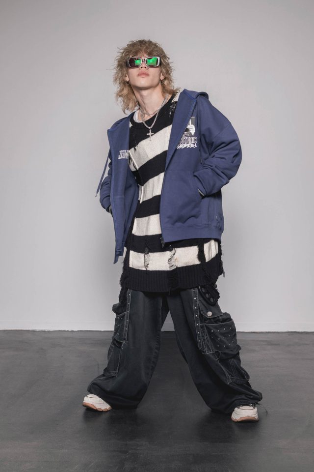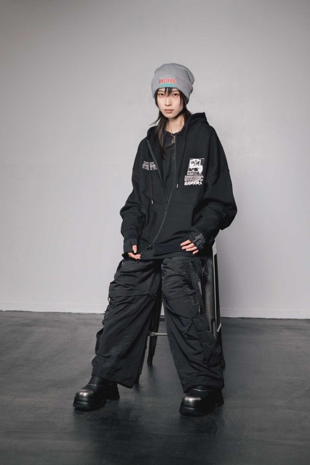 genzai はブランド名が示す「現在」とそこから逃げる、すなわち前に進むこと「逃走」をコンセプトに掲げたストリートブランド。アートディレクターの永戸鉄也がデザイン、監修を担当し、幅広くカルチャー、思想を落とし込んだアイテムを展開している。今回 HYSTERIC GLAMOUR (ヒステリックグラマー)」との第二弾となるコラボレーションのLOOKのモデルには若手の新鋭ラッパー who28、モデルの ASAKA を起用し、 HIPHOP を好きな10~20代を中心に支持を集めている。