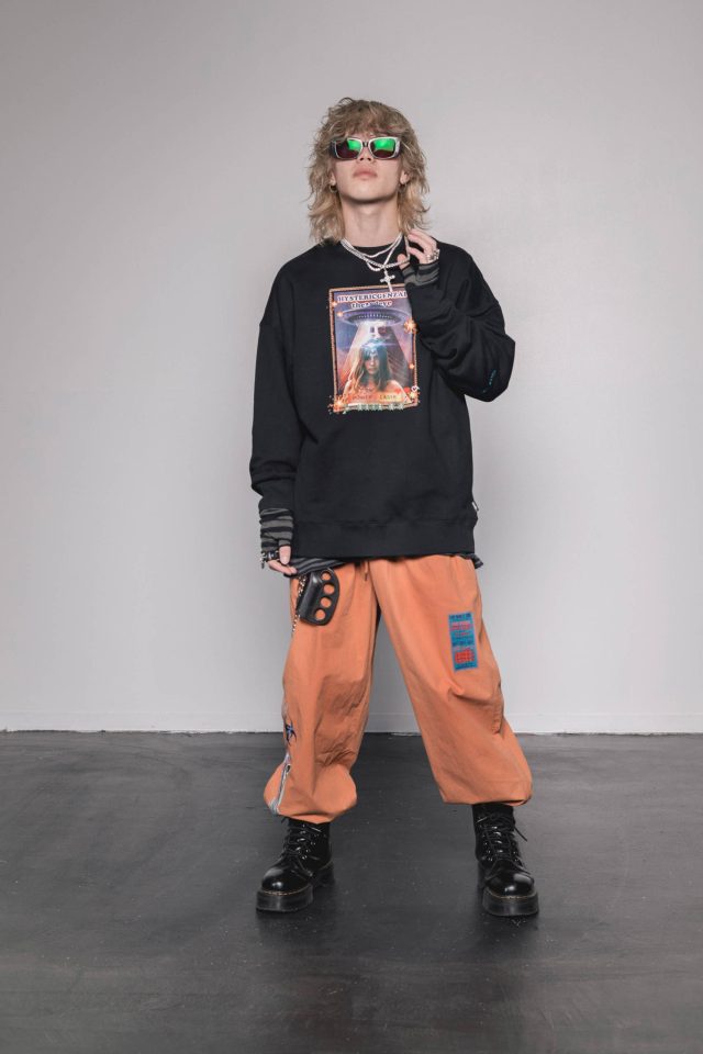 「早いもので前回の HYSTERIC GLAMOUR とのコラボレーションから1年が経っていて、あの時に開眼したサードアイも開いたまんま、、。そして世界は相変わらずうるさいし、最近は小さな宇宙人が小型の UFO に乗って下北沢上空を飛んでるらしいし、もう何が起きても大丈夫。2023年も楽しんで進んでいこう。」と genzai のアートディレクターの永戸鉄也は言う。今回のコラボレーションではスウェット、フーディー、トラックジャケットなど計10型が12月17日(土)に販売。