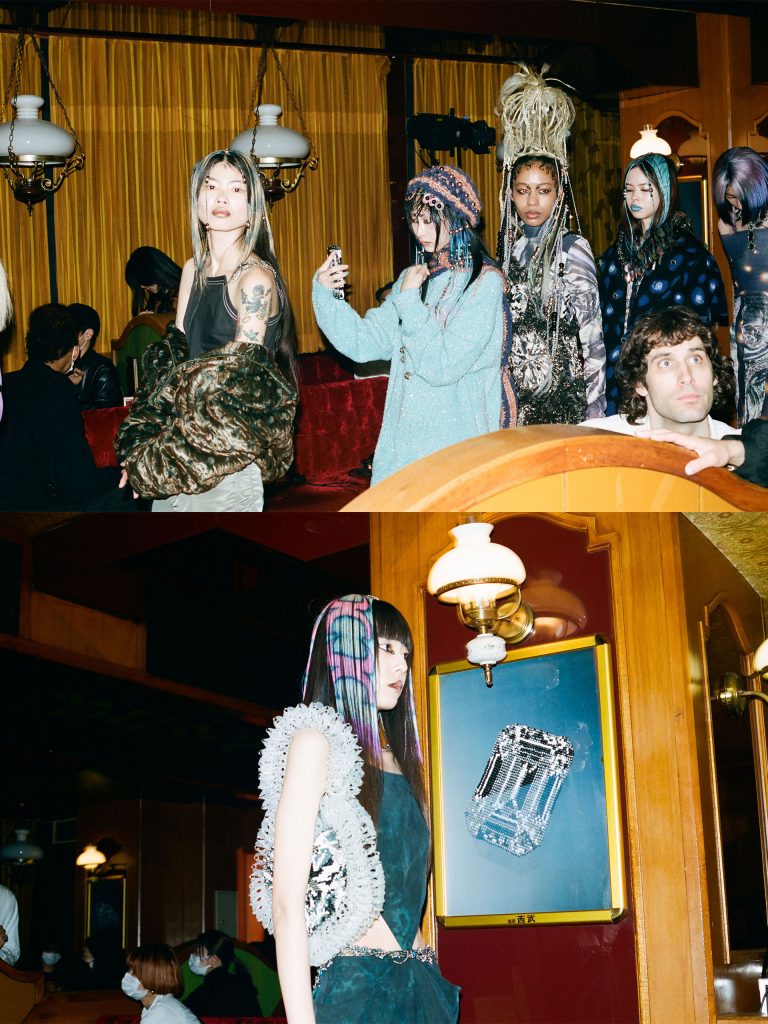 中国・上海を拠点に活動するブランド YUEQI QI (ユェチ・チ)が、2023年秋冬コレクションを新宿の純喫茶「珈琲西武」にて発表した。「Edge of Time (時間の果て)」と名付けられた本コレクションは、未来と過去の時間の流れや永遠などにフォーカス。YUEQI QI ならではの緻密なビーズ作品やヘッドピースで会場を彩り、鳴り止まない拍手に包まれ大成功で幕を閉じた。ショー開始直前のバックステージの写真を公開!幻想とリアルの狭間、特別な時間をご堪能あれ。