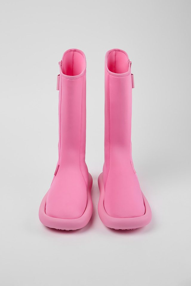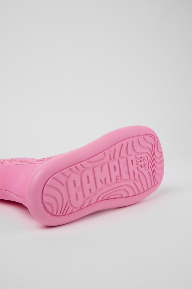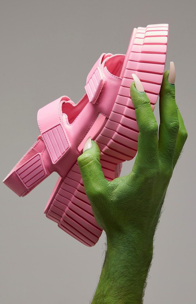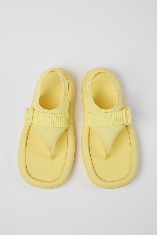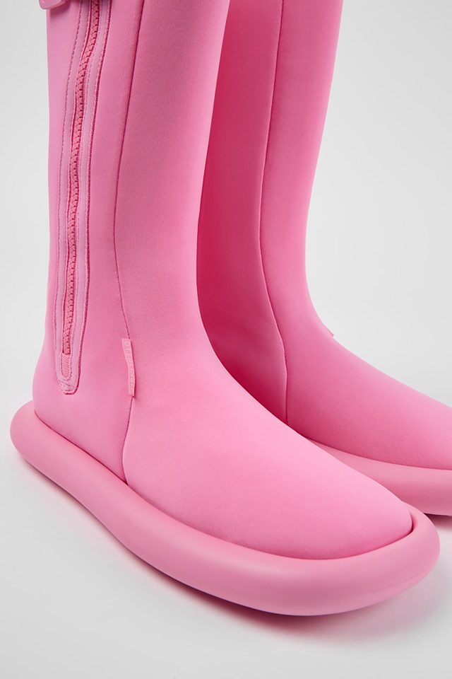 今回登場したのは、ゴムボートの形状にインスパイアされた丸みの帯びたシルエットと、水の動きからイメージを受けたユニークなデザインの2種。暑い季節にぴったりなフラットなトングサンダルは、柔らかな雰囲気のシャーベットイエローと、ブラックを展開。また、サマースタイルのジップアップブーツは、青みがかった夏らしいバブルガムピンクとブラックが登場する。