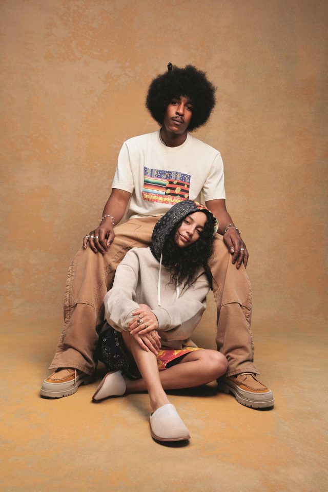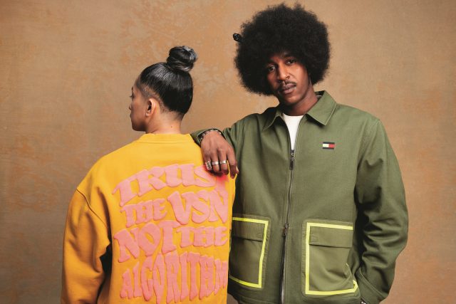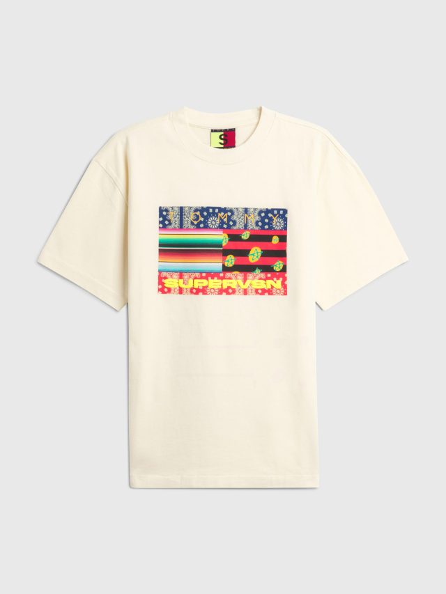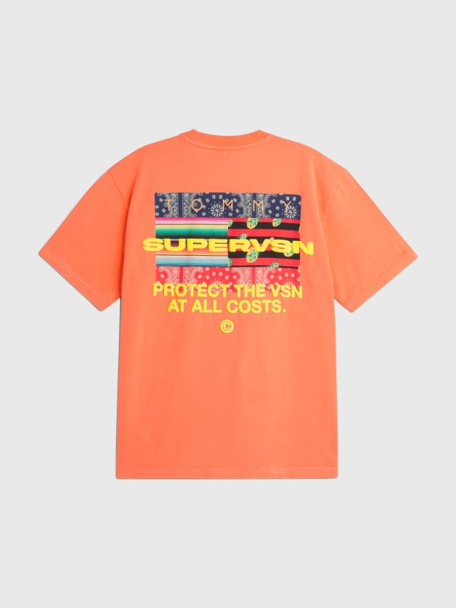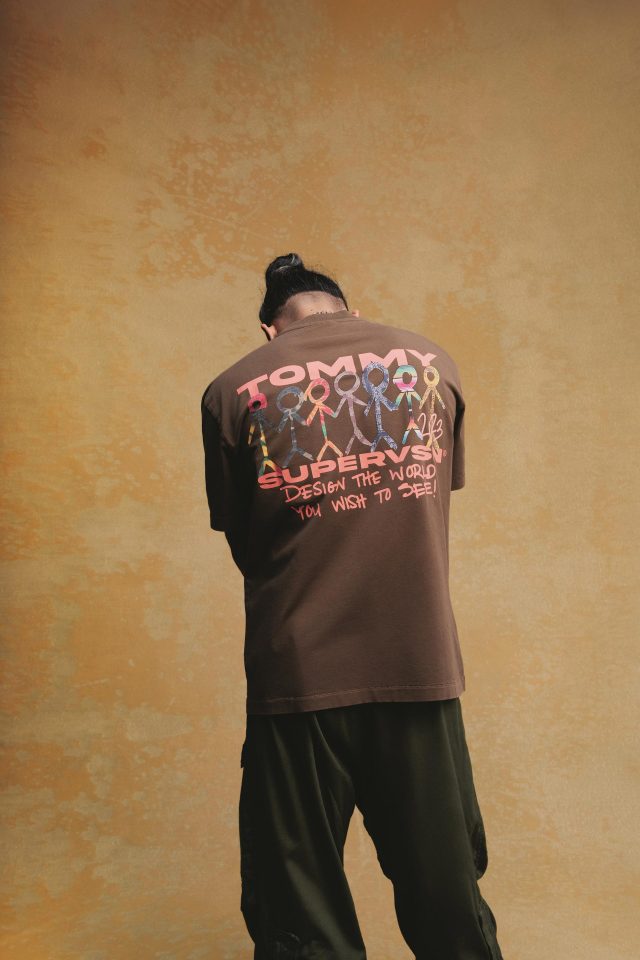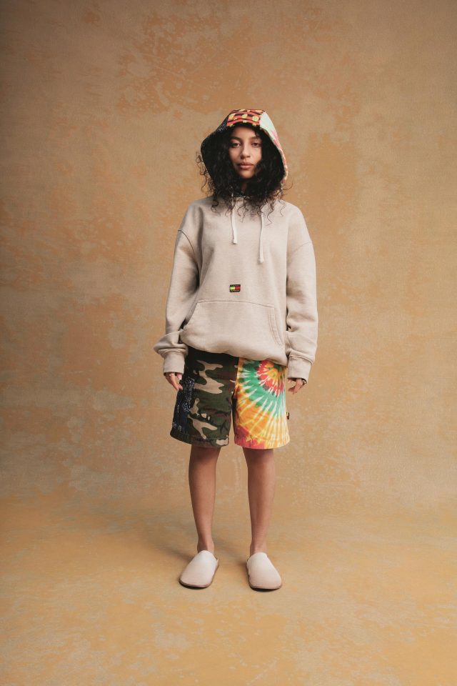 今回の TOMMY JEANS と SUPERVSN STUDIOS のコラボレーションでは、「Tapestry of Americana (アメリカーナのタペストリー)」をテーマとし、 コミュニティが集うことで出来上がるカルチャーの素晴らしさを表現したコレクションとなっている。9ピースで構成され、カモフラージュ柄とタイダイをブレンドしたショーツや、ジャケット、Tシャツ、フレンチテリーフーディーをはじめ、アメリカを象徴する赤と白、青のペイズリーからなる TOMMY ロゴとパン・アフリカンフラッグをリミックスした、新しいアメリカーナともいうべきシンボルにフューチャー。クリエイターそれぞれが成長を楽しみ、自信を持って創造するアイテムが誕生した。