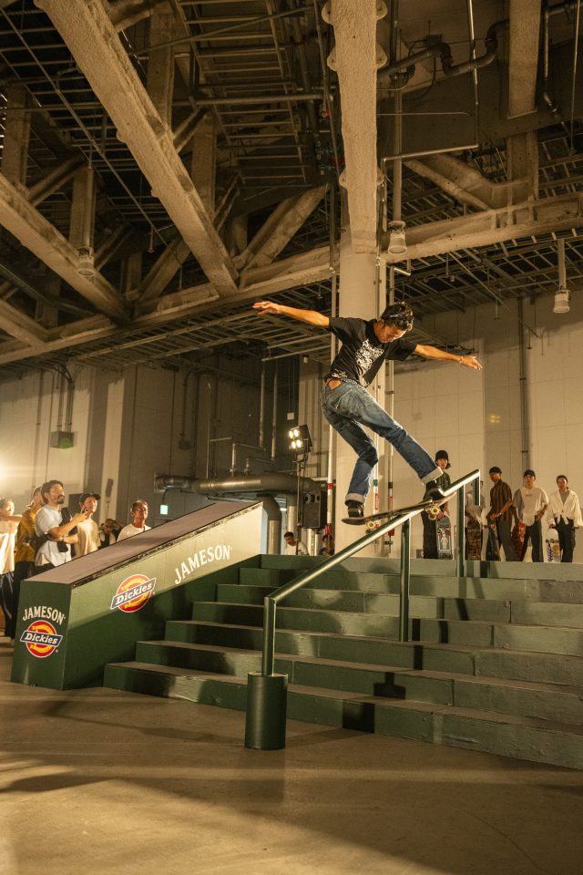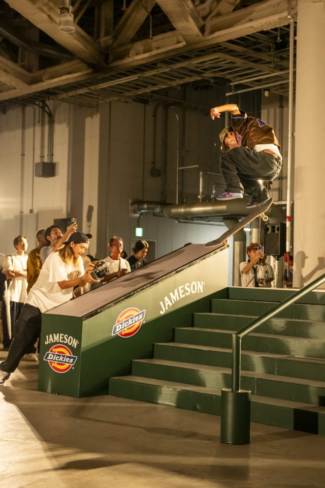 Dickies とのコラボレーションを記念したイベントでは、プロスケーターやストリートスケーターの中田海斗、森中一誠、榊原佳耶をはじめとした、総勢 10 名によるスケートコンペが開催され、それぞれに個性ある滑りを披露した。また、トークショーでは、スケートボードの廃材で作るアーティストの Haroshi や YOPPI こと江川芳文、プロスケーターの小島優斗氏が参加。オリンピック種目になり、競技としての盛り上がりを見せている一方で、スケートパークでしか滑ることができない風潮が強い今の東京のスケートシーンに対する熱い議論が繰り広げられた。