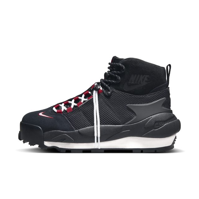 異なる要素を組み合わせ、デザイン性と機能性を高めた革新的な表現を生み出すことで知られている sacai のデザイナーである阿部千登勢。 今回登場する Nike x sacai Magmascape は、「ナイキ フットスケープ」や「ナイキ エア マグマ」から着想を得ており、80年代のハイキングシューズと90年代のフッドスケープをエレガントに融合したデザインである。アッパーにはテキスタイルとプレミアムなスウェードを使用し、上質なレザーを使った sacai らしい 2 枚重ねのシュータンには Nike x sacai の織りネームと AIR のロゴがあしらわれている。また、ダブルになったアイステイに2本のシューレースを通すことで自分に心地良いフィットに簡単に調節可能。Nike x sacai Magmascape は3色展開で、BLACK カラーは日本および sacai 公式オンラインストア限定で取り扱う。12月6日(水)から sacai 公式オンラインストアにて、12月7日(木)から SNKRS、DSM GINZA にて発売予定だ。