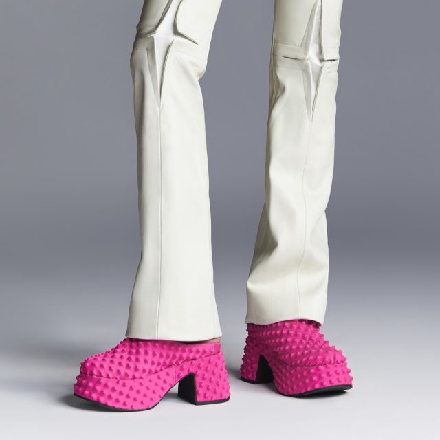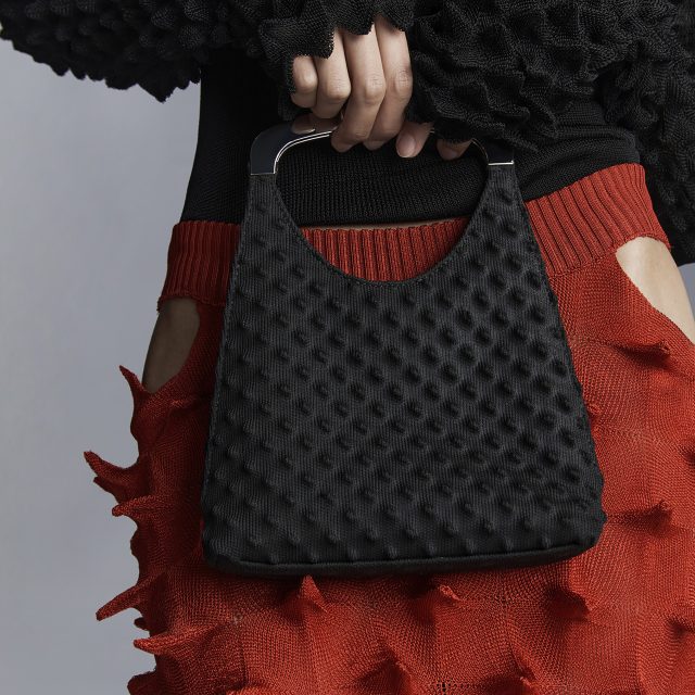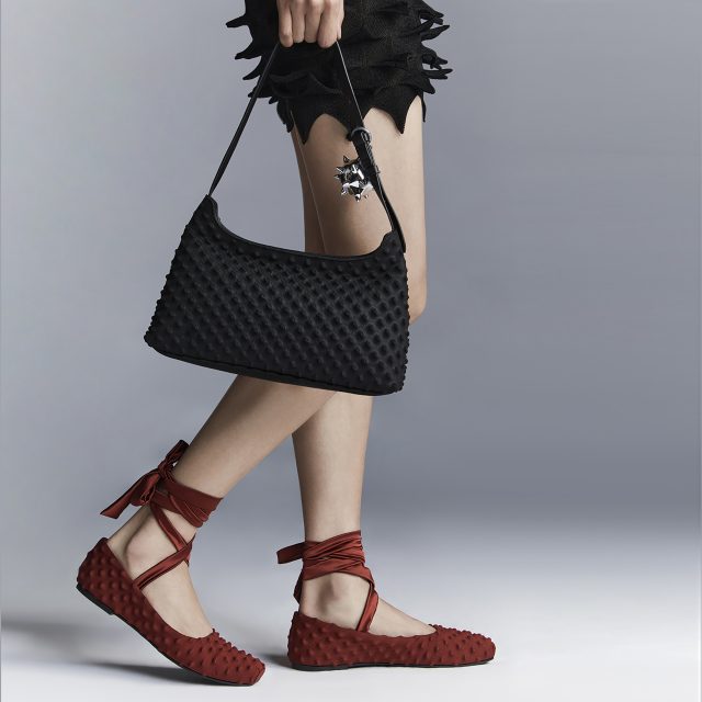今回は、フライバックニットを全面にあしらったデザインが特徴的なミュールとバレエシューズ、ウェッジヒールに彫刻的なスパイクデザインを配したパンプスの計3型が登場。さらに、メタルハンドルが印象的なハンドルバッグやスパイキーボールチャーム付きバッグ、他のアイテムと同デザインのヘッドバンドも取り揃えられている。タイムレスなシルエットをユニークかつ大胆にアップデートしたアイテムたちは、レッド、ブラック、ピンクの3色で展開。本コレクションは、公式オンラインストア及び一部限定ストアにて販売中となっている。