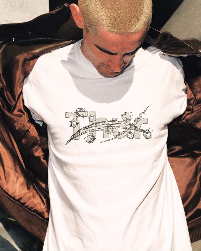 「1週間の中で最も良いテンションである木曜日に着る普段着」をコンセプトに、台北の新世代アーティストが集うレーベル thur.。メンバー達のリアルライフにフォーカスし、自由なアイデアの具現化と、独自のグローバルネットワークを武器に国境を越えて活動する本レーベルが、同じく国内外問わずカルチャーシーンで強い存在感を放つ BLANKMAG とコラボし、DOVER STREET MARKET GINZA (ドーバー ストリート マーケット ギンザ) にてポップアップを開催する。thur. が展開するのは、ファーストコレクションにてリリースされたTシャツ4型と、本ポップアップ限定Tシャツ。フロントにはさまざまな thur. のロゴがデザインされ、バックには大きく DOVER STREET MARKET GINZA の文字をあしらったアイコニックなデザイン。