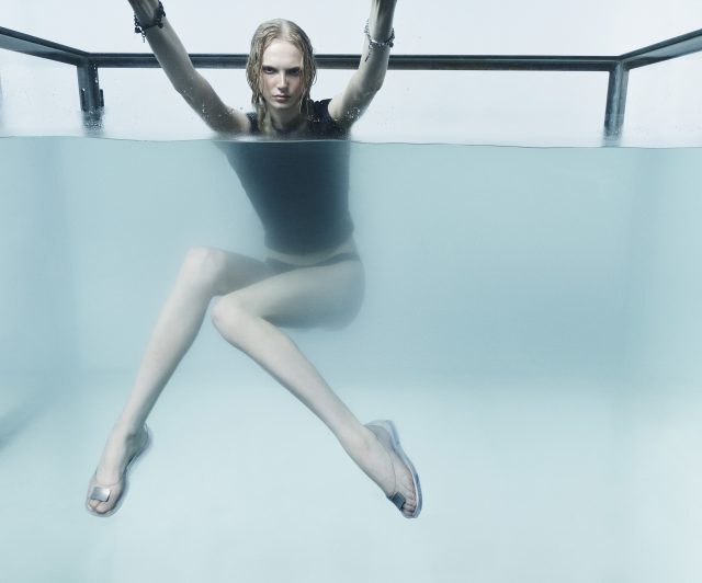「Melissa x Marc Jacobs ミュールサンダル」もクリアな素材感で涼しげな雰囲気を与えながらも、内側はマットに仕上げられており、コントラストが魅力的だ。9cm のヒールは、履いた時のしなやかなシルエットを演出しながらも、快適な履き心地を叶える。