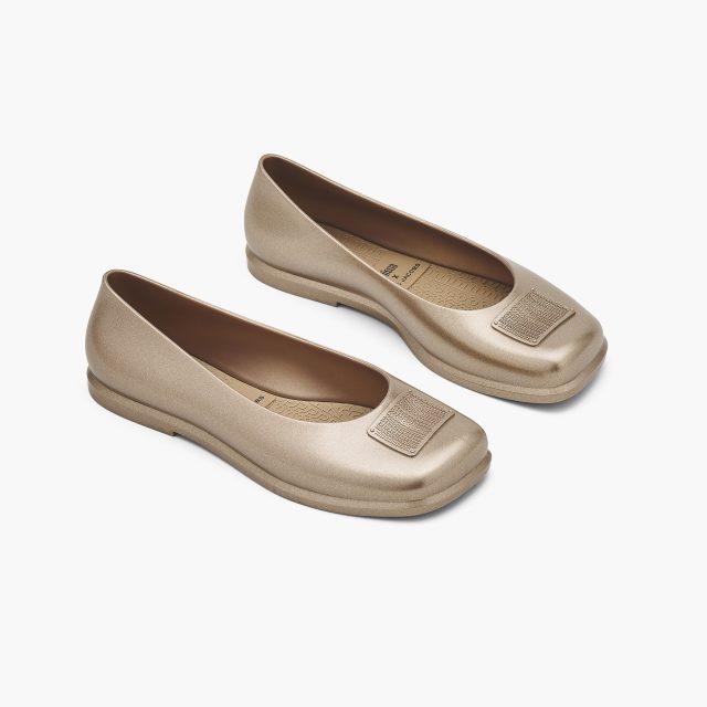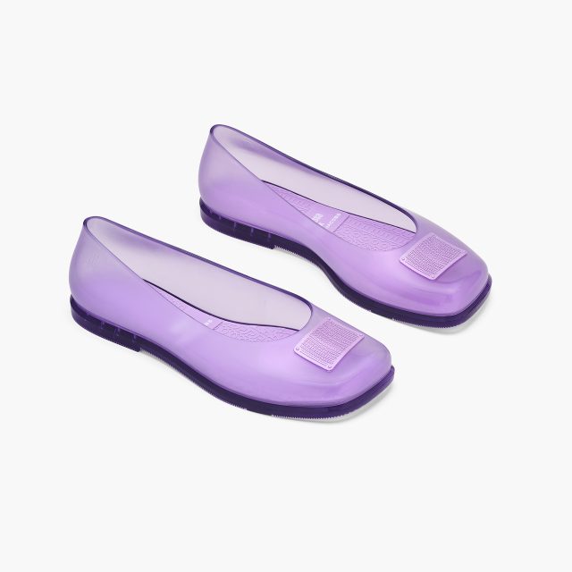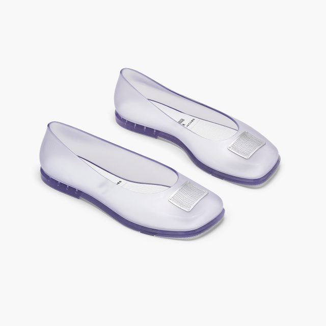 新たに登場する「Melissa x Marc Jacobs Ruby バレリーナ」は、話題のバレエ・コアを想起させるフェミニンなシルエットに、メタリックやクリアなテクスチャがユニークな印象を与える。足元から遊び心を感じさせる一足だが、Melissa が独自に開発したメルフレックスが使用されており、地球にも優しいのが嬉しいポイント。