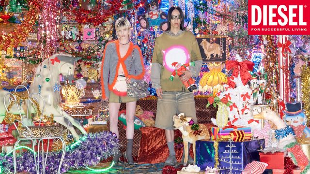クリエイティブ・ディレクター Glenn Martens (グレン・マーティンス) とアート・ディレクター Christopher Simmons (クリストファー・シモンズ) に加え、フォトグラファー Marili Andre (マリリ・アンドレ)によって手がけられた本キャンペーン。キャンペーンビジュアルには、華やかな装飾と超越した高揚感とは対象的に、2024年秋冬ランウェイと2025年春夏プレコレクションのルックをまとったクールな表情のモデルたちが写し出される。