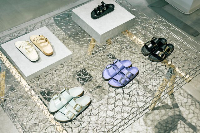 本ポップアップでは、「自然な歩行」を追求してきた BIRKENSTOCK の世界観を体感できる空間に、ブランドを代表する定番モデルが勢揃い。世界中で大人気の BOSTON (ボストン) 、夏の王道サンダル ARIZONA (アリゾナ)、自然体の美しさを感じさせるトングスタイル GIZEH (ギゼ) などに加え、新作も豊富にラインナップ。手編みレザーのストラップがフェミニンな印象を添える BRAIDED (ブレイデッド) シリーズや、リベットやラフィア素材を用いた夏らしい新顔が揃う。アップデートされた FLORIDA (フロリダ) や PASADENA (パサデナ) など、ファンはもちろん、ビギナーも楽しめる充実のセレクションとなる。
