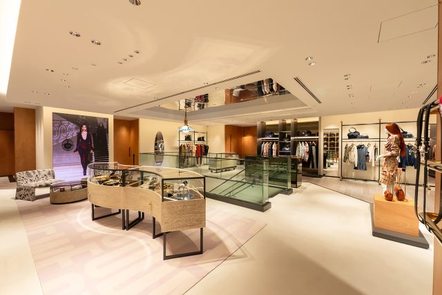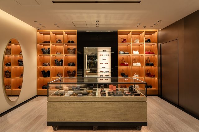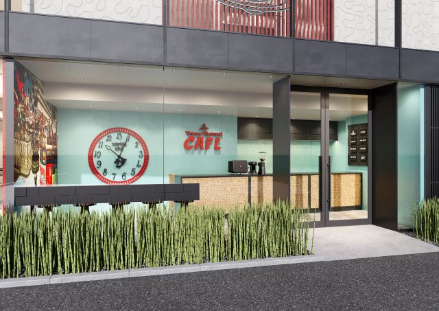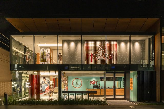新店舗では、メンズ・ウィメンズアイテムに加え、日本初上陸となる「Vivienne Westwood CAFÈ」が併設され、リラックスした空間を提供。店舗デザインは、Vivienne Westwood のグローバルコンセプトを軸に、日本ならではの美意識や建築的要素を随所に取り入れた。「格子越し」の視覚的演出を採用し、視線をやわらかく遮りつつも、光や風、奥行き、そして日本的な間の美しさを表現。格子の奥には、漆の朱を思わせる色を差し込み、季節の移ろいや品のある佇まいを感じさせるアクセントが施されている。