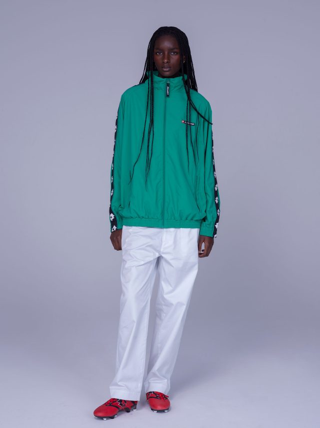 本コレクションでは、アーカイブのロゴやカラーを再構築し、現代のファッションシーンにフィットする洗練されたデザインとシルエットにアップデート。アイコニックな 「MILAN TO NEWYORK TO TOKYO」 のプリントを配したプルオーバーやマフラーなど、ブランドの新たな世界観を体現した全14型が展開されている。