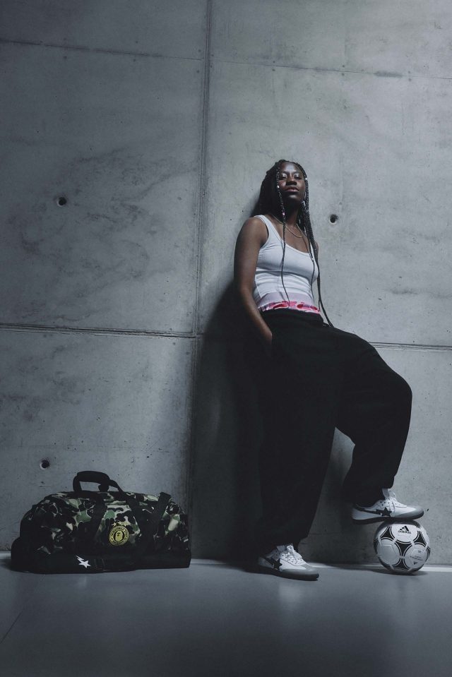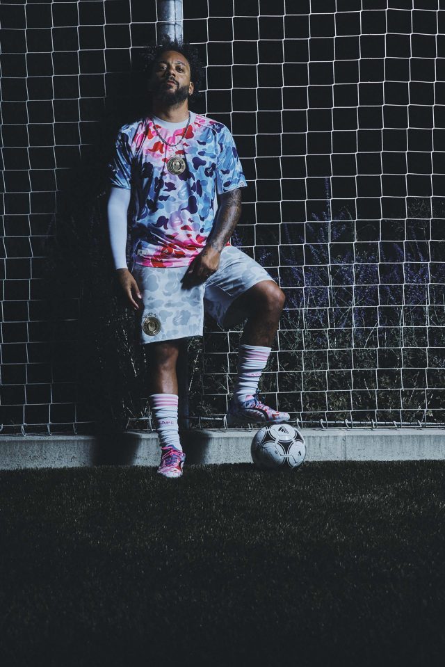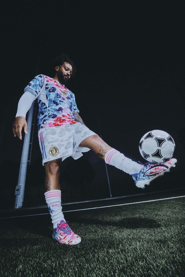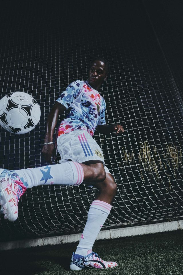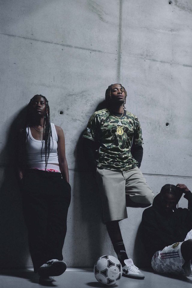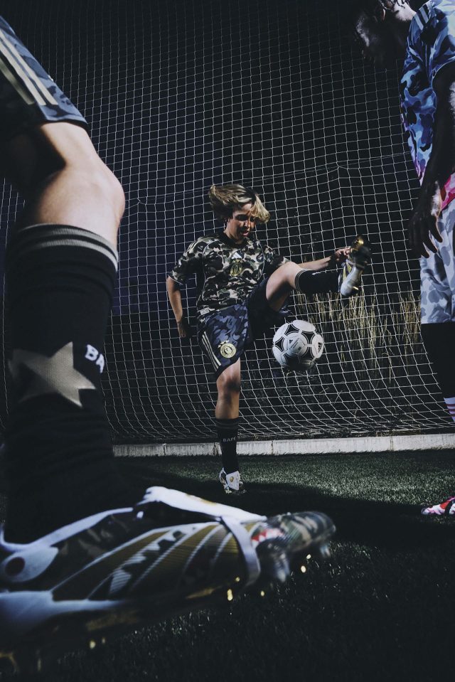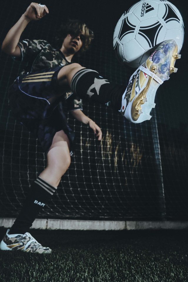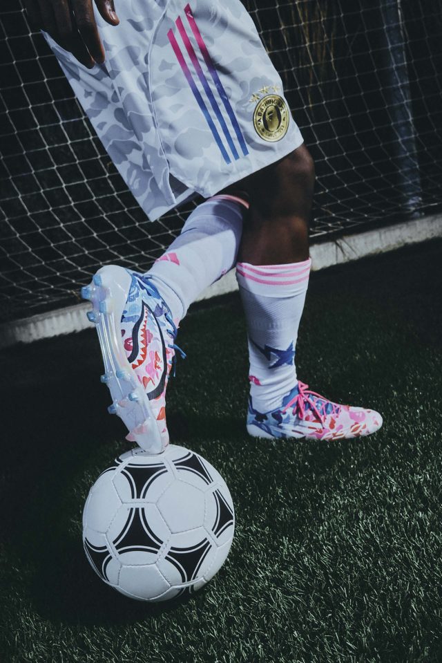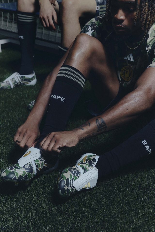 サッカーの未来を称えるコレクションとして誕生した今回の「adidas × BAPE®」。BAPE® の大胆な感性と adidas のスポーツイノベーションを融合し、ピッチからストリートまでをシームレスにつなげるラインナップが揃う。