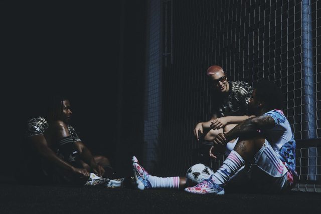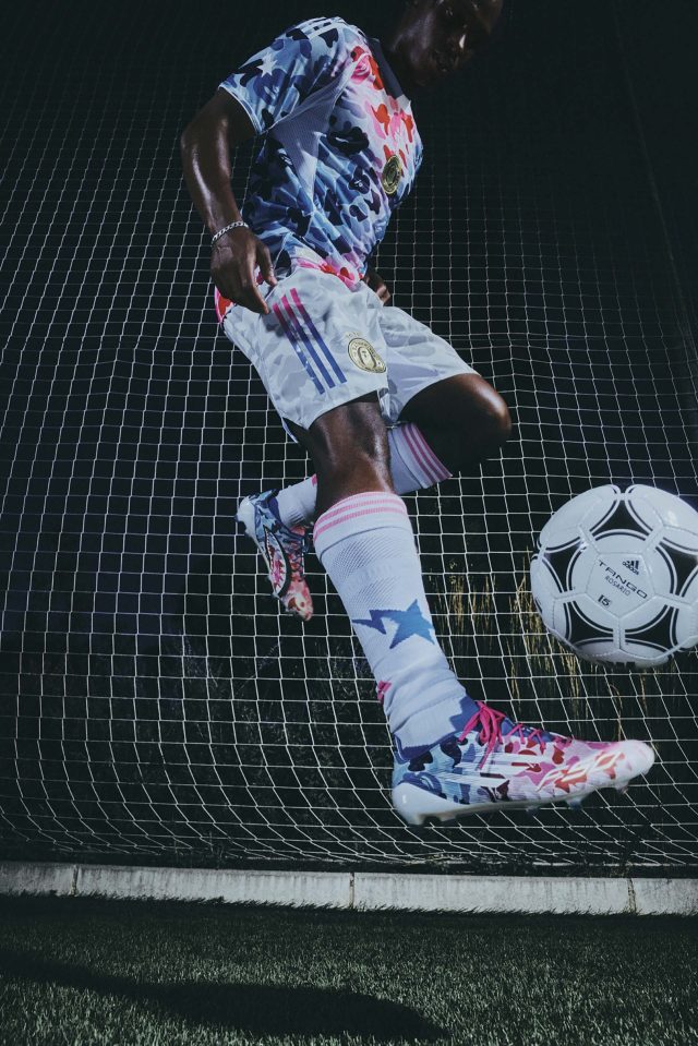 フットウェアでは、adidas を代表するサッカースパイク 「プレデター ELITE FT FG」 と 「F50 ELITE FG」 をアップデート。プレデターには折り返しシュータンと ABC CAMOをあしらい、ゴールドのスリーストライプスやシャークグラフィックを配置。F50 はブルーからピンクへと変化するグラデーションの ABC CAMO アッパーに、シャークグラフィックとクリアスターのプリントを施した。