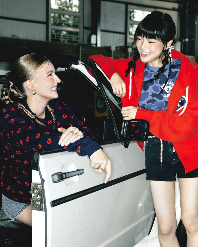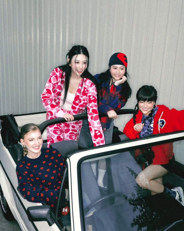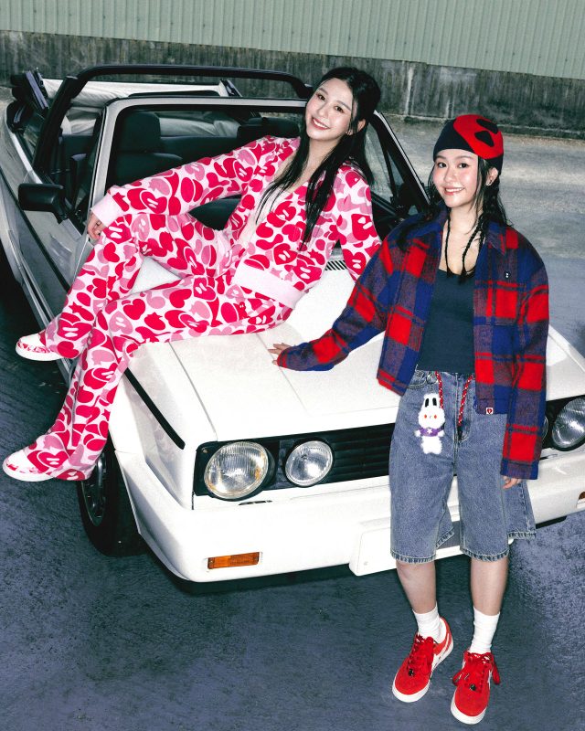 APEE は、女性が大胆で美しい個性を表現することをテーマに掲げ、甘さとセクシーを融合させたスタイルを築いてきたウィメンズブランド。 BATHING APE® の DNA を少女らしさで再解釈し、ハートモチーフとカラフルなカモフラージュ柄を象徴とする。少女たちがファッションを通じて自分のストーリーを語り、そして彼女たちが自然体でいられることを大切にしてきた。
