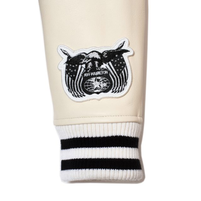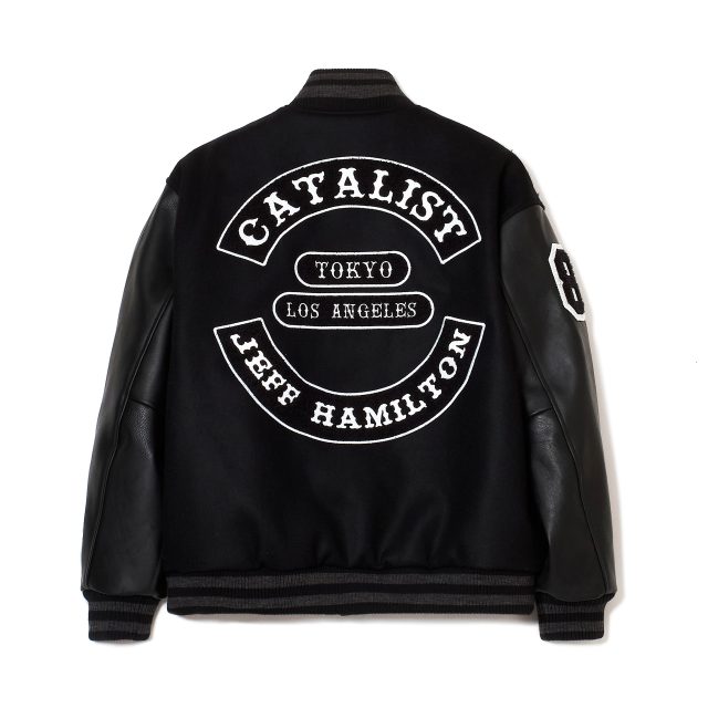 スリーブには、Jeff Hamilton の代名詞である肉厚で存在感のある牛革を配置。クラシックなアメリカンスポーツの美学と、現代ラグジュアリーの価値観が素材レベルで真正面からぶつかり合う、唯一無二のデザインとなっている。本アイテムは各色20枚限定で、CATALIST 大阪店、名古屋店、ROYAL FLASH 神宮前店、新宿店にて、12月13日(土)に発売予定。限定数での展開となる本コラボレーションをお見逃しなく!