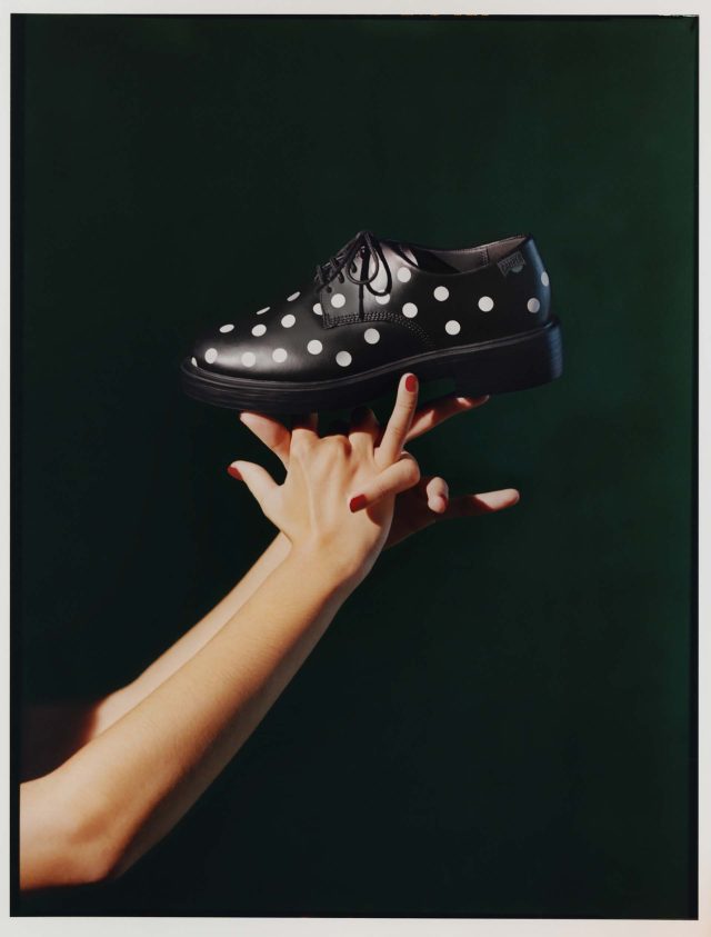 ラインナップの中心となるのは、ユニセックスライン「Dean (ディーン)」と、春夏の定番として支持を集める「Casi Myra (カシ マイラ)」。「Dean」は、南スペインの伝統衣装に着想を得たホワイトのポルカドットやレザーのラッフルを取り入れ、モードに昇華。XL EXTRALIGHT®︎ EVA アウトソールと Ortholite®︎ クッションフットベッドによる快適な履き心地も備える。「Casi Myra」は、ブラック×ホワイトのオーバーサイズポルカドットを纏い、ラッフルつきのバレリーナやアンクルブーツも展開。さらに、モノトーンで対子した「Twins (ツインズ)」シリーズや、低めのウェッジヒールとシャープなトゥが印象的な新ライン「Anita (アニータ)」も今季デビューする。いずれも、踊りの躍動感を日常に落とし込みながら、CAMPER らしい機能性と洗練を両立したデザインが特徴だ。