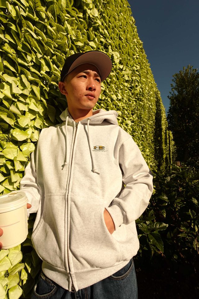 今回のラインナップで特に見逃せないのは、Bobby Yamamoto 自らが手作業でプリントを施した一点物のカットソー類だ。一枚ごとに異なる表情を持つアートピースのような仕上がりは、量産品にはない独自の存在感を放っている。あわせて、スモールロゴを配したデイリーユースなジップフーディや、暗闇を投影するライト付きキーホルダーなど、彼の遊び心が詰まったプロジェクトも登場。