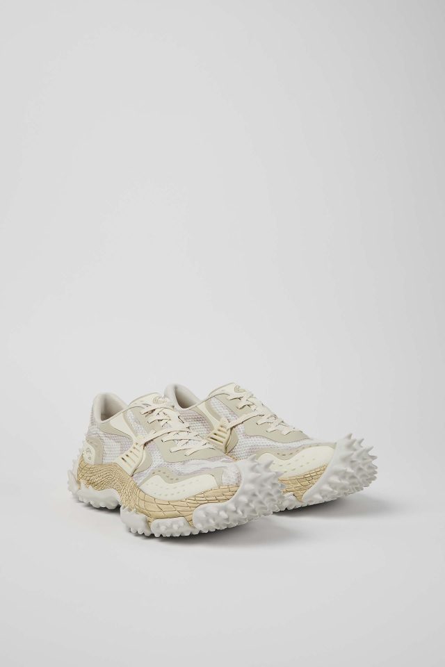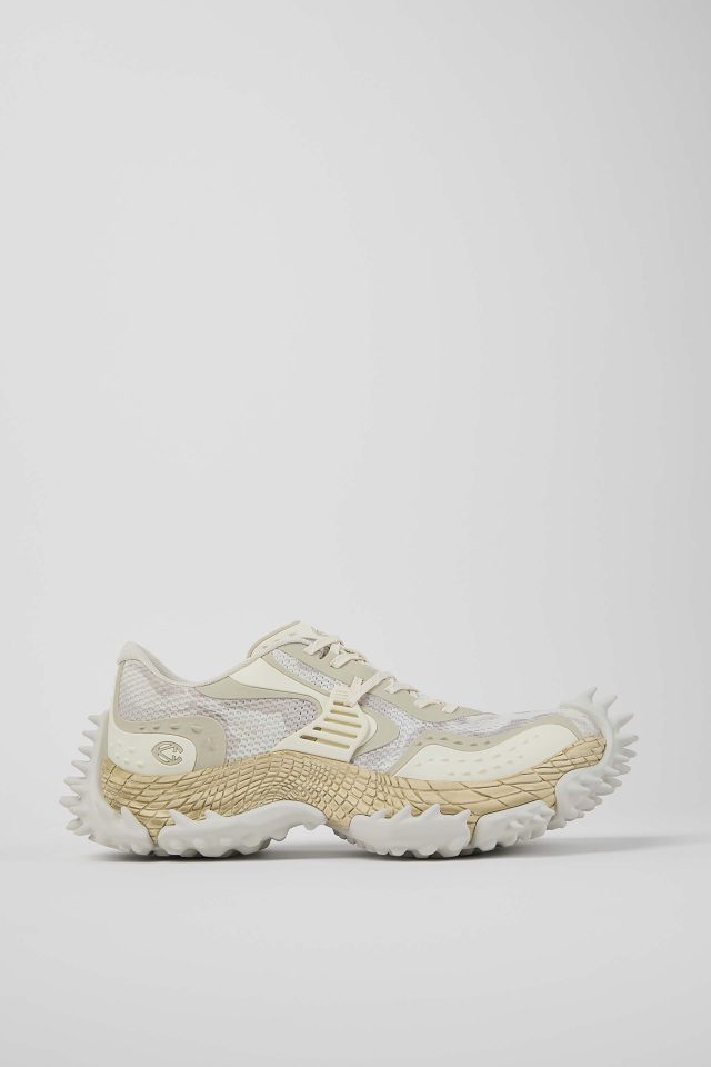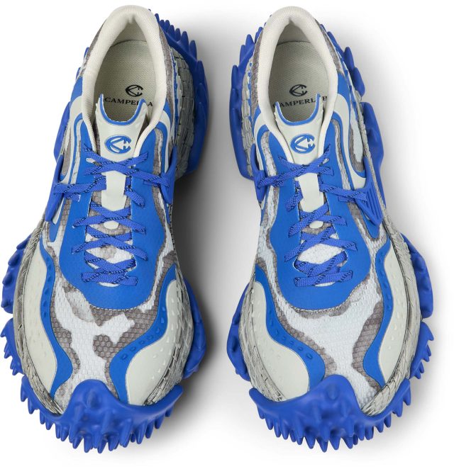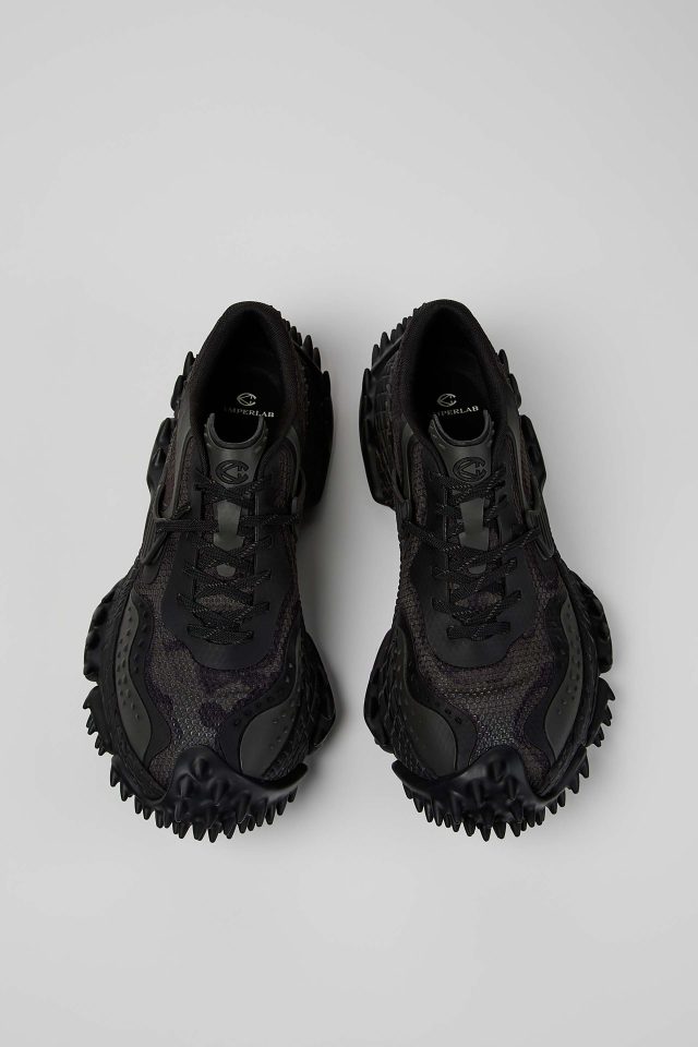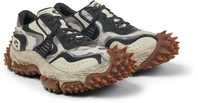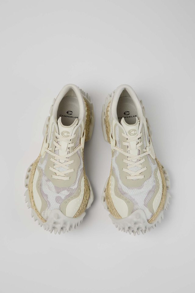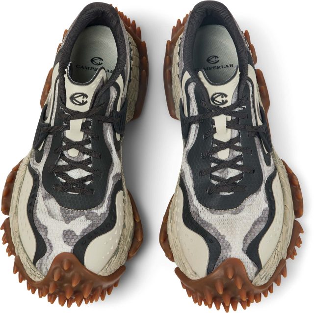 彫刻的で爬虫類を彷彿とさせるミッドソールは、一体成型のアッパーを包み込むことで高い耐久性を実現。内部には高反発 EVA や ORTHOLITE®︎ X40インソールを搭載し、その大胆な見た目からは想像できないほどのクッション性と快適な履き心地を両立させている。100%リサイクルメッシュを採用し、サステナビリティへの配慮も忘れないのが CAMPERLAB 流だ。