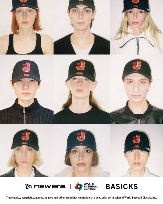 デザイナー 森川マサノリが率いる BASICKS と、スポーツとライフスタイルを横断するグローバルブランド NEW ERA がタッグを組んだ本コラボレーション。ラインナップには、ヘッドウェアモデル2種「9FORTY™」と「Retro Crown 9FIFTY™」をはじめ、両ブランドのコラボレーションで初登場となるアパレル「Short Sleeve Cotton Tee」を加えた全3アイテムを展開する。