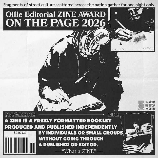 イベントラインナップには、ストリートカルチャーマガジン『Ollie (オーリー)』監修による ZINE の祭典「Ollie Editorial ZINE AWARD: ON THE PAGE2026」、大阪にルーツを持ち、オリジナリティの高いタッチでファッションや音楽といったシーンでも注目を集めるタトゥーアーティスト TAPPEI と原宿のセレクトショップ CANNABIS (カンナビス) が作り上げる空間「TAPPEINTING NIGHT」など、感度の高いカルチャーイベントが揃う。さらに、6,000円以上買い物をした人には先着で、関西のカルチャーWEBメディア『MARZEL (マーゼル)』セレクトのお香と、大阪発ストリートブランド WHIMSY (ウィムジー) のロゴが入ったライターのプレゼントも用意されている。