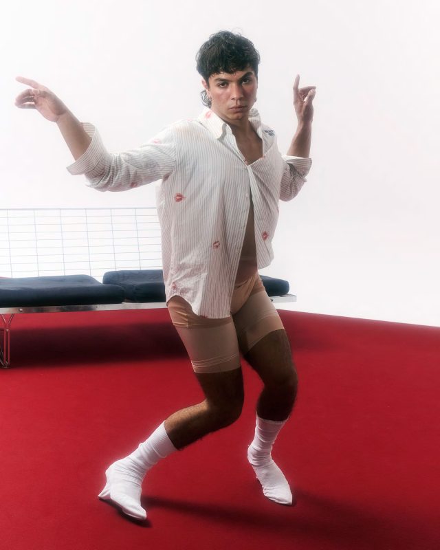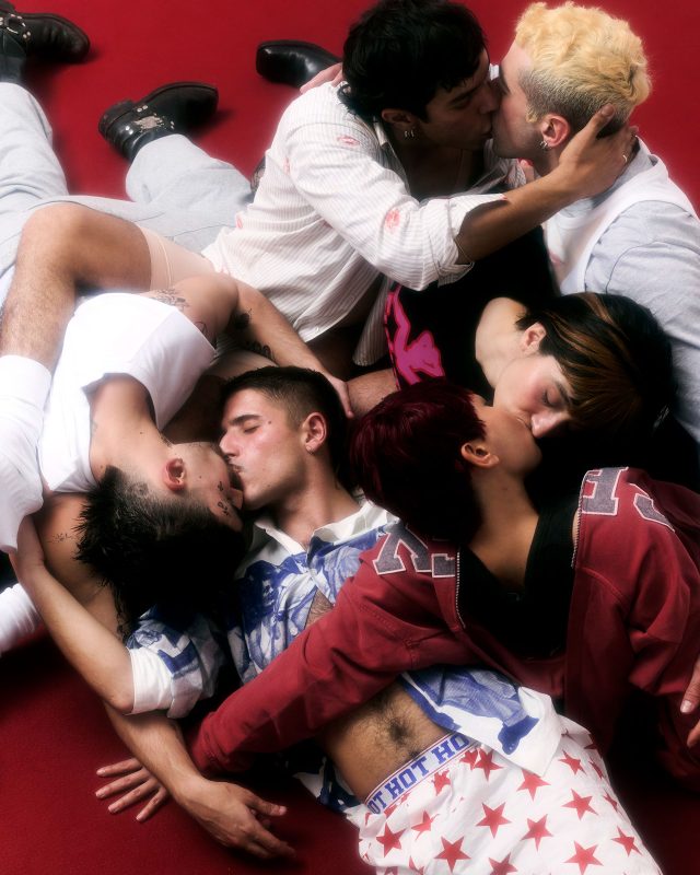 コレクションの核となるのは「Besos Hasta Agotar Stock」。スペイン語で「キスを使い果たすまで」を意味し、キスを単なる愛情表現ではなく、抵抗と頼り合いの感情が交錯する行為として解釈。その相反する関係性が、コレクション全体を通して描かれている。