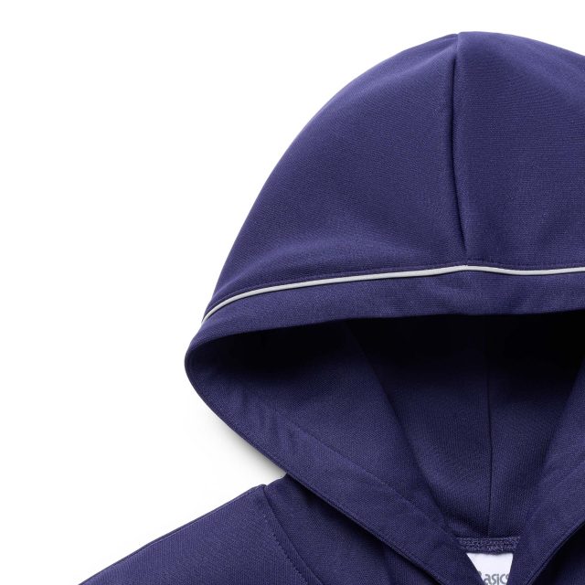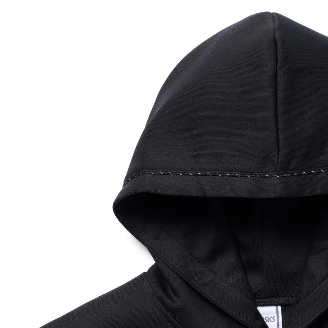 アパレルラインでは、ASICS のアーカイブを現代的なシルエットに再解釈した、100%リサイクルポリエステル採用の軽量なアイテムが揃う。特徴的なカッティングが光るジャージ素材の「ニットジャケット」や、裾ファスナーでシルエットの変化を楽しめる「ニットパンツ」に加え、背面に「栞」タグを配した「フーディー」が登場。いずれも当時のスポーツウェアの仕様を活かしつつ、日常使いに適した機能性とボリューム感を両立させている。