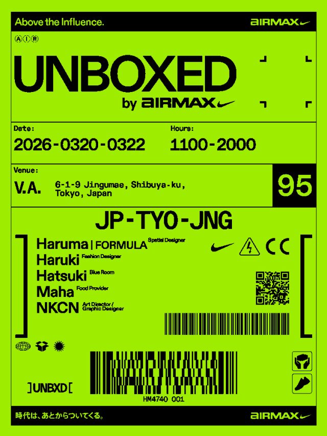 1995年の誕生以来、多くのシーンで愛され続けてきた NIKE AIR MAX。発売当初に衝撃を与えた先鋭的なデザインは、時代とともに受け入れられ、いまやストリートカルチャーを象徴する存在となっている。今回開催されるポップアップでは、そのストーリーと重なるように、現在のストリートシーンで注目を集めるアーティストたちが展示のキュレーションを手がけている。